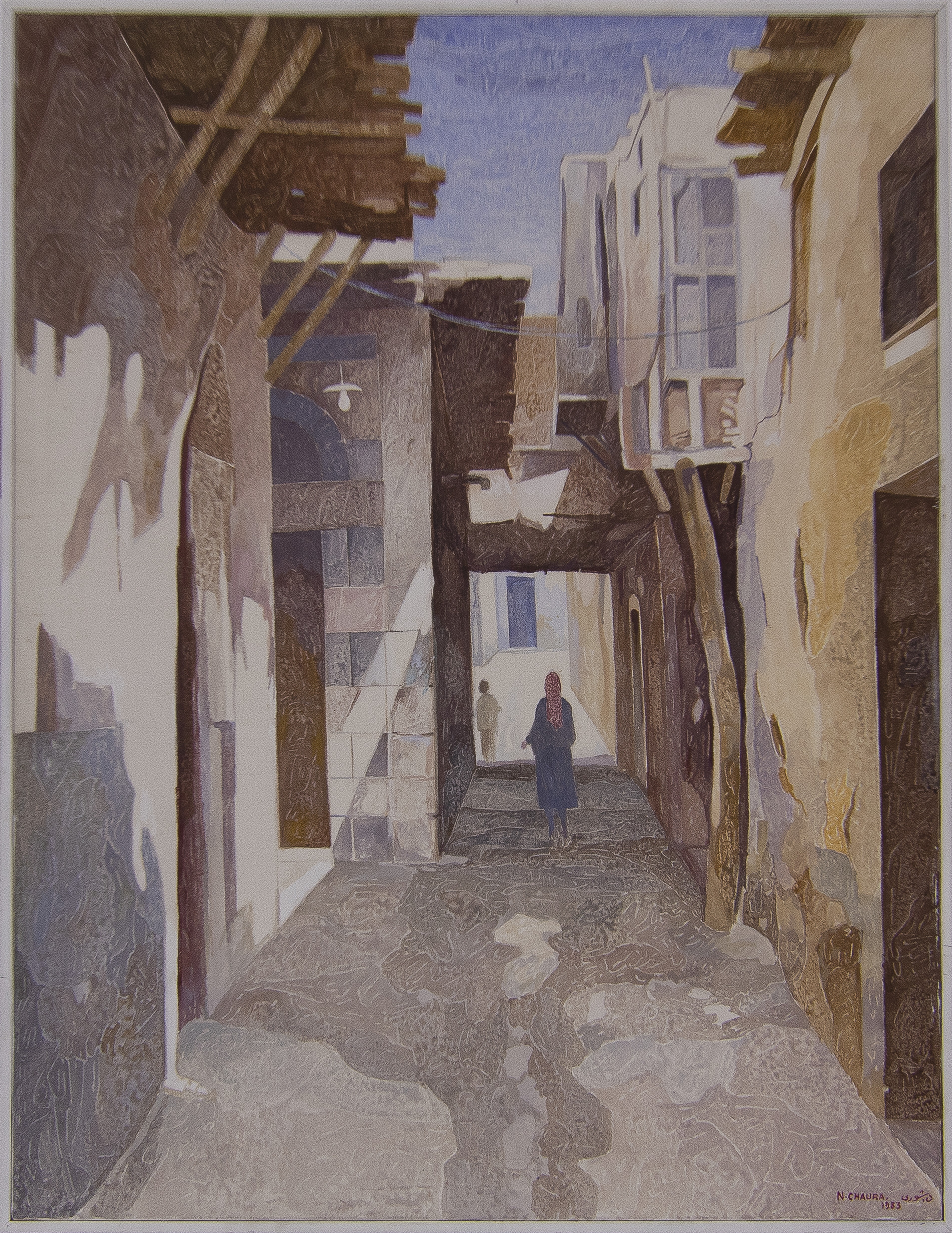 Born in Damascus, Nassir Chaura (1920–1992) began drawing in school and moved to Italy in the late 1930s to study fine arts. During the turbulent period leading up to the Second World War, Chaura left Italy for Egypt, finally graduating from the Department of Painting, Faculty of Fine Arts, Cairo in 1947.